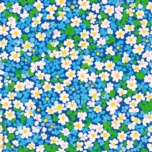 Repetitive colorful flower pattern for Spring theme fabric design.