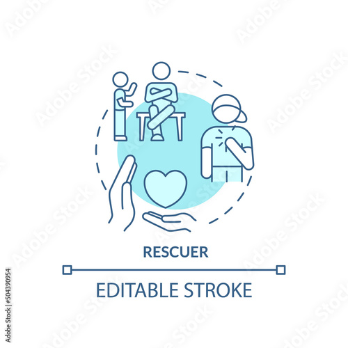 Rescuer turquoise concept icon. Child role in dysfunctional families abstract idea thin line illustration. Isolated outline drawing. Editable stroke. Arial, Myriad Pro-Bold fonts used