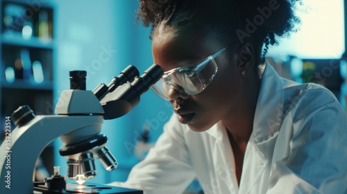 Research scientist using microscope in modern laboratory