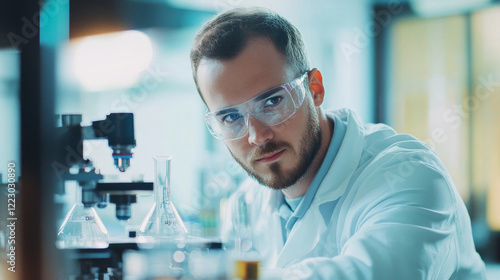 Researcher conducts experiments in a laboratory with advanced equipment during the daytime