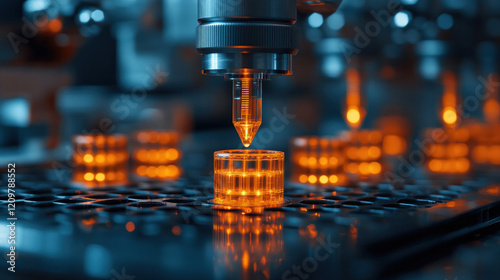 Researchers creating artificial organs in a cutting-edge biology lab, using advanced bioprinting technology