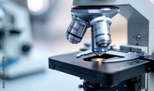 Researchers use microscopes for close-up shots,on the clean background