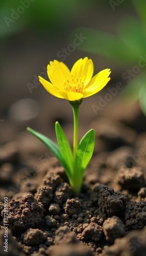 Resilient yellow flower growing in impoverished soil, soil, resilient, conditions