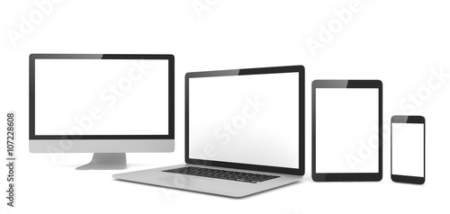 Responsive web design, laptop, smartphone, tablet, computer, display. 3d rendering.