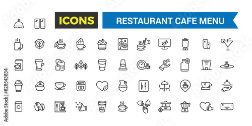 Restaurant cafe menu, food and drink icon set. Outline icons pack. Editable vector icon and illustration.