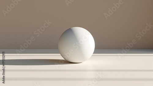 Resting on a pristine white plane. Serene elegance, unblemished simplicity, resting sphere. Generated by AI.