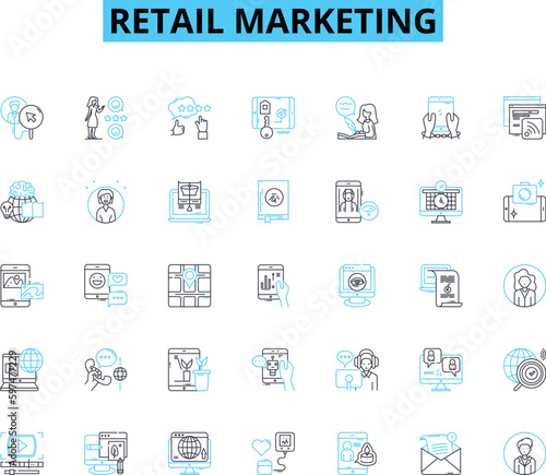 Retail marketing linear icons set. Customer-centric, Personalization, Omnichannel, Loyalty, Experience, Sales, Pricing line vector and concept signs. Promotions,Branding,Targeting outline