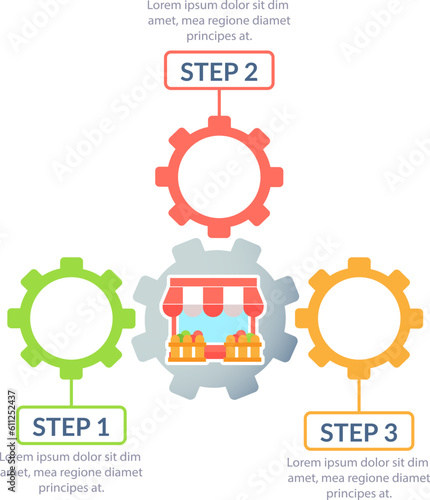 Retail store management infographic chart design template. Shop supervision. Abstract vector infochart with blank copy spaces. Instructional graphics with 3 step sequence. Visual data presentation