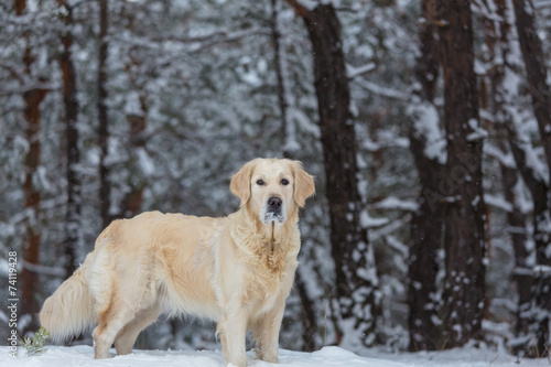 Retriever in winter forest