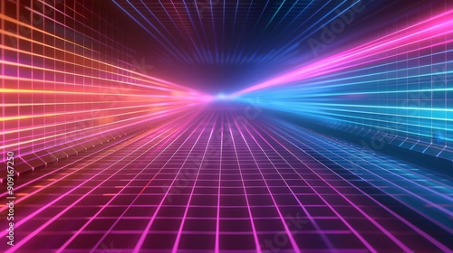 Retro 80s grid background with neon colors and grid lines