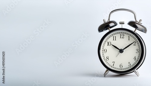 Retro alarm clock on white uniform background. Time to work or get up concept. Generative AI