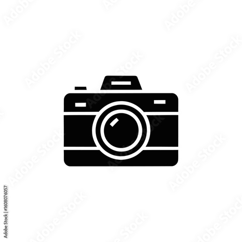 Retro and modern digital camera icons with lenses symbolize the evolution of photography equipment in a compact, focused illustration