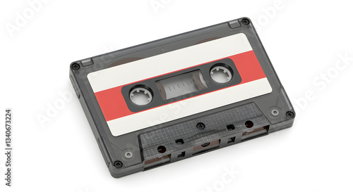 Retro Compact Cassette Tape with Red Stripe, Isolated on White