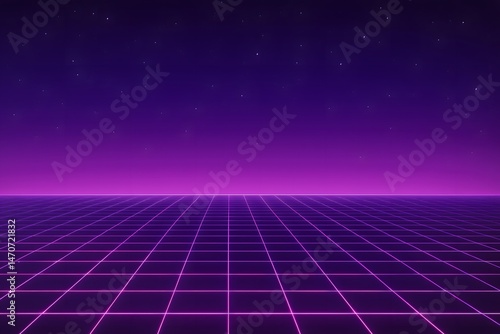 Retro Futuristic Neon Grid Background in Synthwave Style