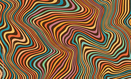 Retro groovy background. Abstract colourful and textured wavy shapes design. Beautiful Vector color gradient background with noise and wavy lines. Abstract minimal grainy gradient banner background