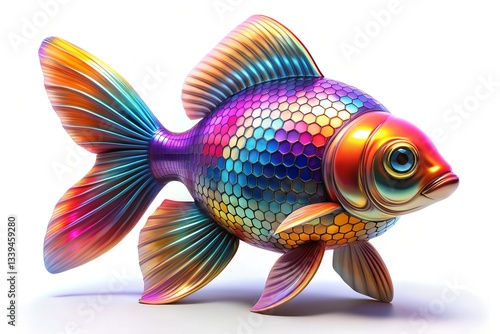 Retro Groovy Disco Goldfish with Vibrant Colors and Psychedelic Patterns, Perfect for 70s-Themed Designs