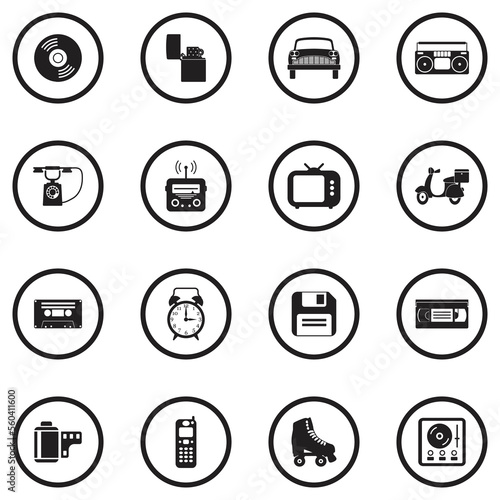Retro Icons. Black Flat Design In Circle. Vector Illustration.