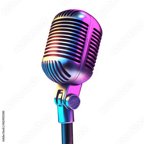 Retro Microphone Colorful Broadcast Equipment On Transparent Background