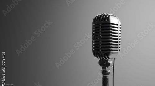 Retro microphone on a gray background. 3d rendering, 3d illustration.
