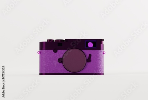 Retro photo camera on a light background. The concept of taking pictures, classic photo camera, analog. 3D render; 3D illustration.