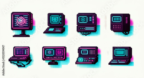 Retro Pixel Art Computer Icons 8-bit Digital Design Elements