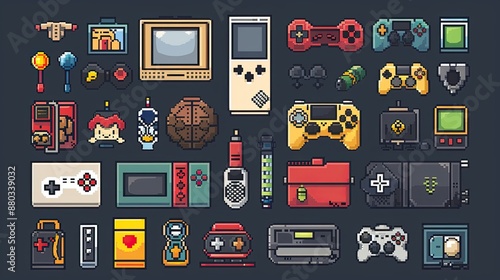 Retro pixel art icons with nostalgic 8-bit designs.