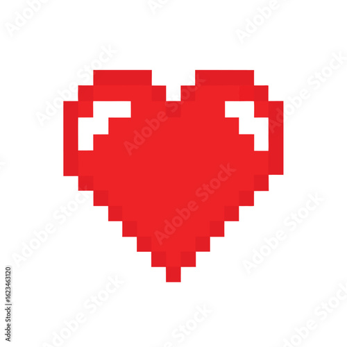 Retro pixel art red heart design reminiscent of classic video games and 8 bit graphics