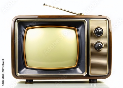 Retro Portable TV Silhouette, Blank Screen, White Background - Stock Photo