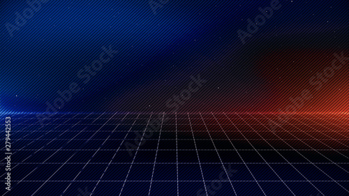 Retro Sci-Fi Background Futuristic landscape of the 80`s. Digital Cyber Surface. Suitable for design in the style of the 1980`s
