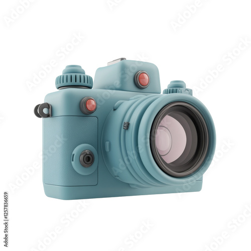 Retro style digital camera with blue body and large lens for photography enthusiasts