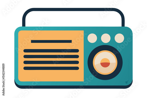 Retro teal and orange portable radio with handle