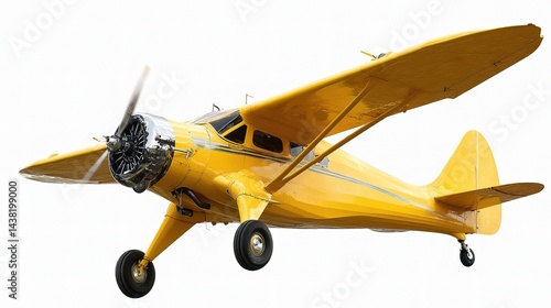 Retro Yellow Monoplane in Mid-Air with Landing Gear Visible