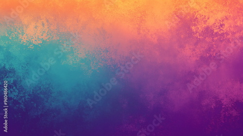 Retro-style gradient background with vibrant orange, teal, and purple hues
