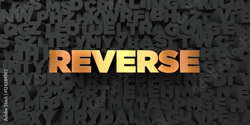 Reverse - Gold text on black background - 3D rendered royalty free stock picture. This image can be used for an online website banner ad or a print postcard.