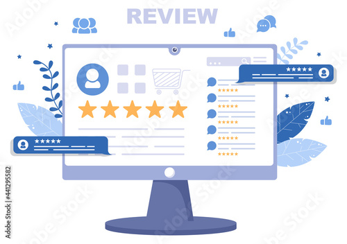 Review Vector Illustration Customer Giving Star with Good or Bad Rate From Feedback, Testimonial, Notification and User Experience Concept