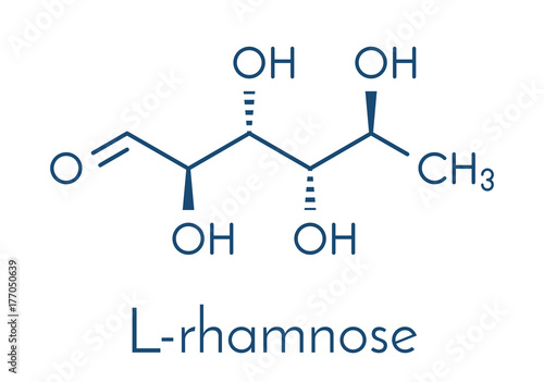 Rhamnose (L-rhamnose) deoxy sugar molecule. Used in cosmetics to treat wrinkles. Skeletal formula.
