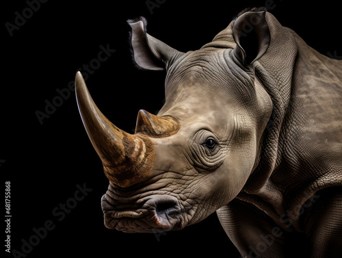 Rhino Studio Shot Isolated on Clear Black Background, Generative AI