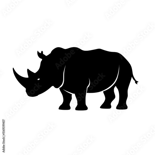 rhino vector , a rhinoceros silhouette standing on a white background on transparent background , no background
