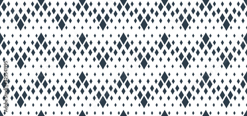 Rhomb seamless geometric vector pattern, rhombus simple black and white wallpaper background, ethnic folk embroidery or carpet style image.