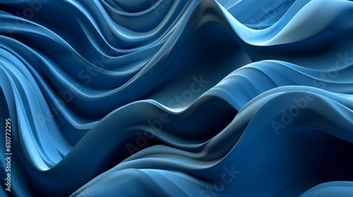 Rhythmic Azure Waves: An Abstract Exploration of Sculptural Aesthetics and Surreal 3D Landscapes on Shaped Canvas, Echoing Abstraction-Création Principles