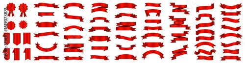 Ribbon banners set. Red gradient. Big ribbons set. Ribbons collection isolated on white background. Ribbons set for promotion design. Vector illustration. EPS10.