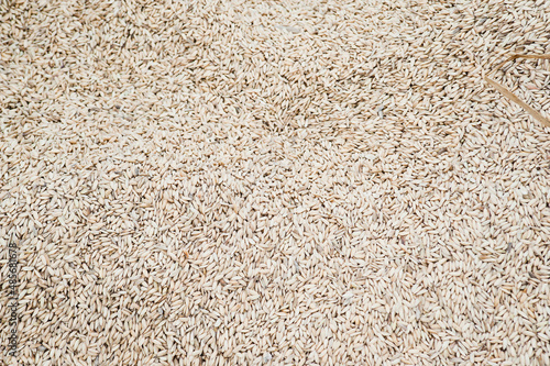 Rice drying out in a field, Bandung, Java, Indonesia, Asia, Asia, background with copy space