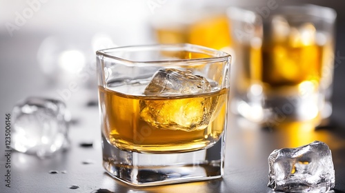 Rich Amber Whiskey with Ice Cubes in Glass for Relaxing Evenings : Generative AI