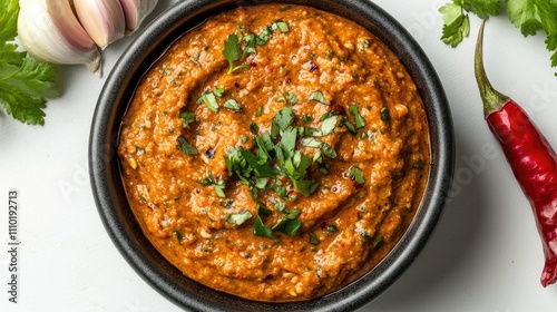 Rich and Spicy Indian Chutney with Fresh Herbs and Garlic