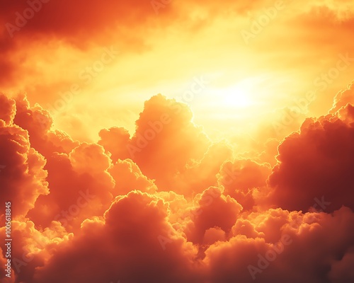 Rich orange gradient in a vertical sky photo, clouds parting in the middle to expose the sky, vibrant and beautiful background