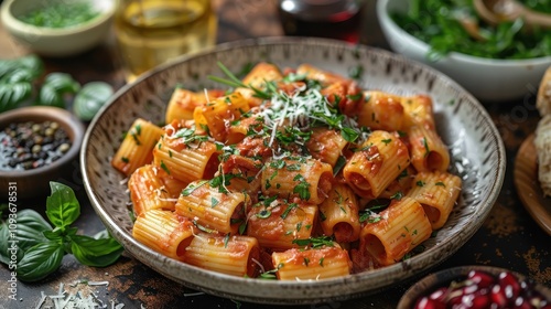 rigatoni cooked on plate
