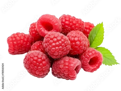 Ripe group of raspberries fruit isolated on transparent background cutout, PNG file.