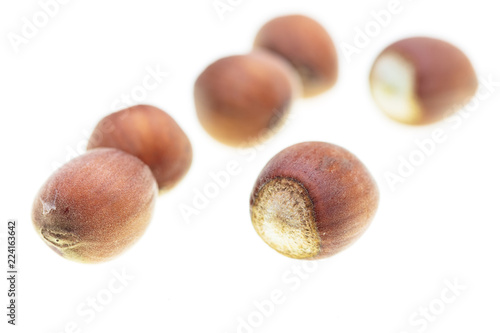 Ripe hazelnut nuts isolated on white background
