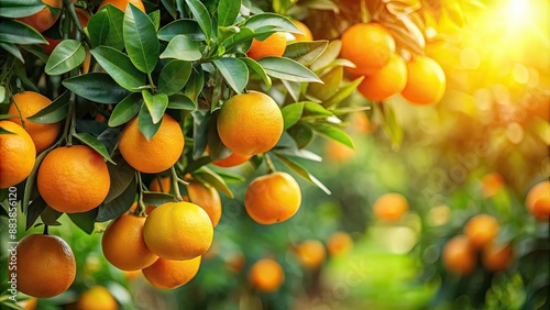 Ripe oranges hanging from tree amidst lush green leaves , orange, fruits, ripe, tree, vibrant, green, leaves, picking, harvest