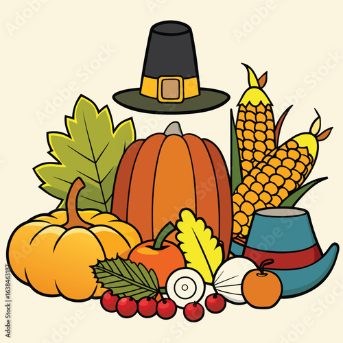 Ripe pumpkins and autumn vegetables create a vibrant illustration for the fall harvest and Halloween season